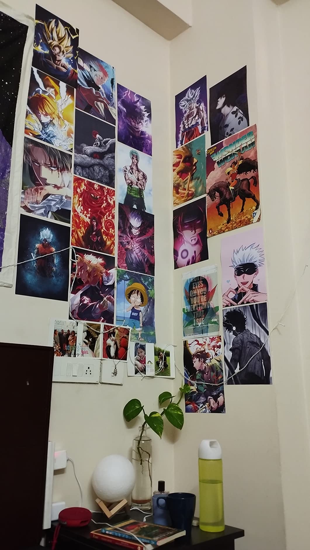 REDCLOUD Paper Set Of 20 Mix Anime PEEL N STICK Self Adhesive Light weight posters for long lasting on Wall Posters Size - A4 Anime posters for bedroom | Naruto anime | Demon slayer | Dragon ball z | Jujutsu kaisen | One piece | Attack on titan