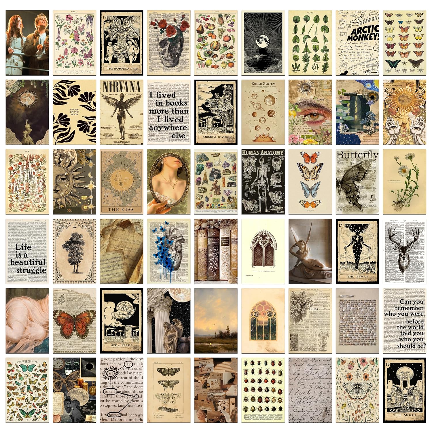RedCloud Peel N Stick Self Adhesive Set of 12 Aesthetic Vintage Wall Collage Kit Posters - A4 Size Each Poster for Wall Decoration - Wall Art For Bedroom, Office, Living room, Dorm room