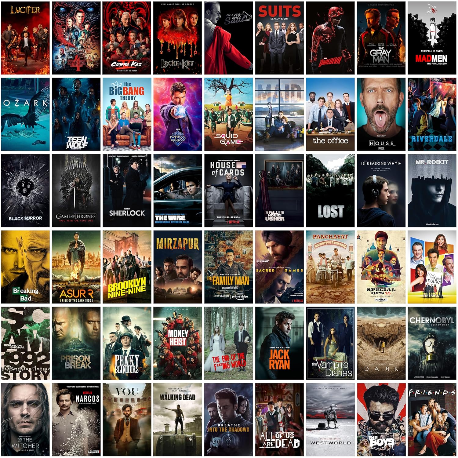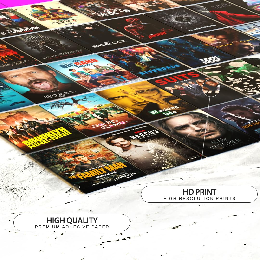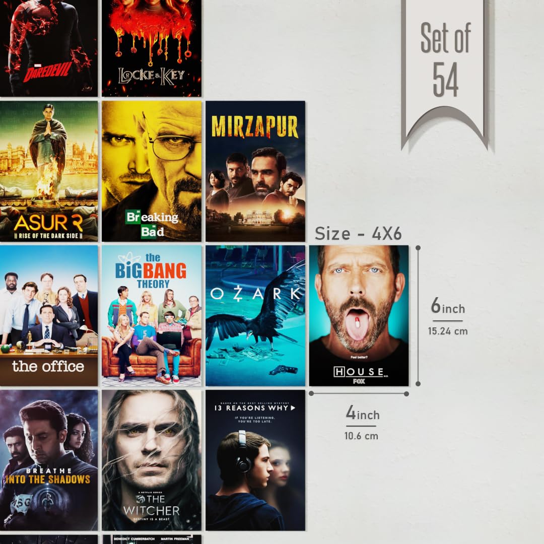 REDCLOUD Peel N Stick Self Adhesive 54 Pcs Web Series Tv Show Wall Collage Kit - 4 x 6 Inches Posters for Wall Decoration - Bedroom, Office, Living Room, Dorm Room