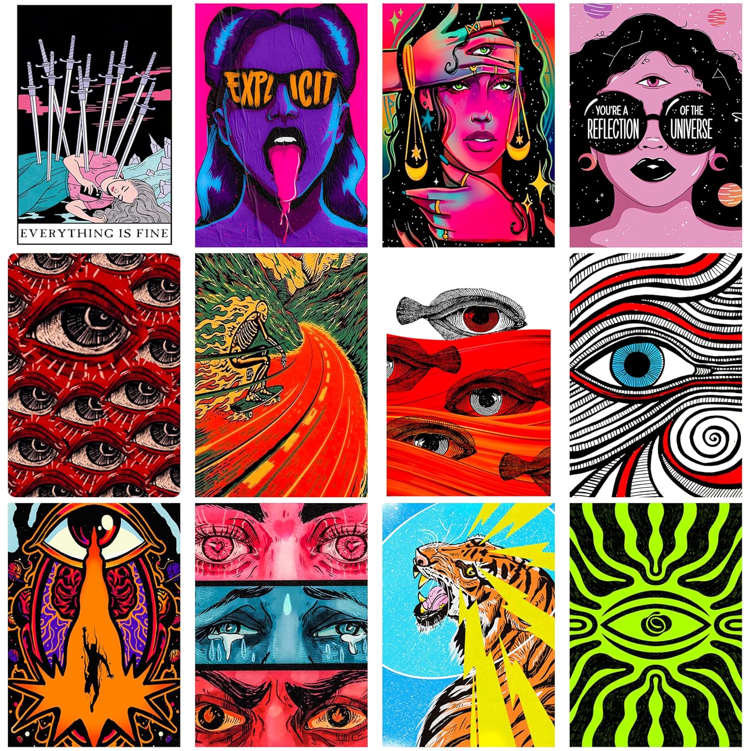 RedCloud Psychedelic Visionary Wall Posters Set of 12 | A4 Size each Self-Adhesive Prints for Bedrooms & Gaming Rooms
