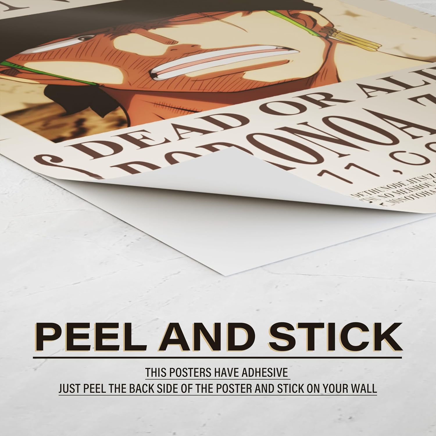 RedCloud Set of 20 PEEL N STICK One Piece Wanted Self Adhesive Light weight posters for long lasting on Wall Posters of Size A4 for Bedroom | office | LUFFY | ZORO | SANJI | FRANKY