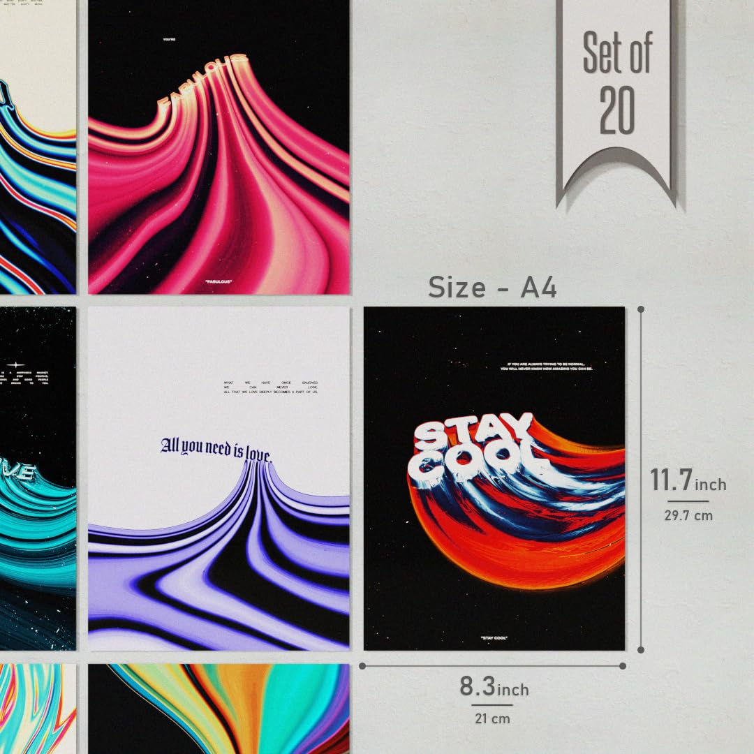 RedCloud Set of 20 PEEL N STICK Self Adhesive Light weight posters for long lasting on Wall Poster For Room Cool Aesthetic Posters A4 Size text Wall Posters for Bedrooom, Office, Dorms, Studio