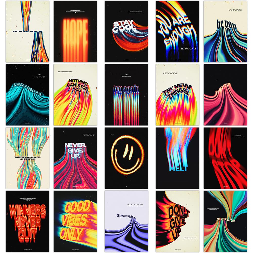 - Product Type: Set of 20 stylish wavy neon text posters.