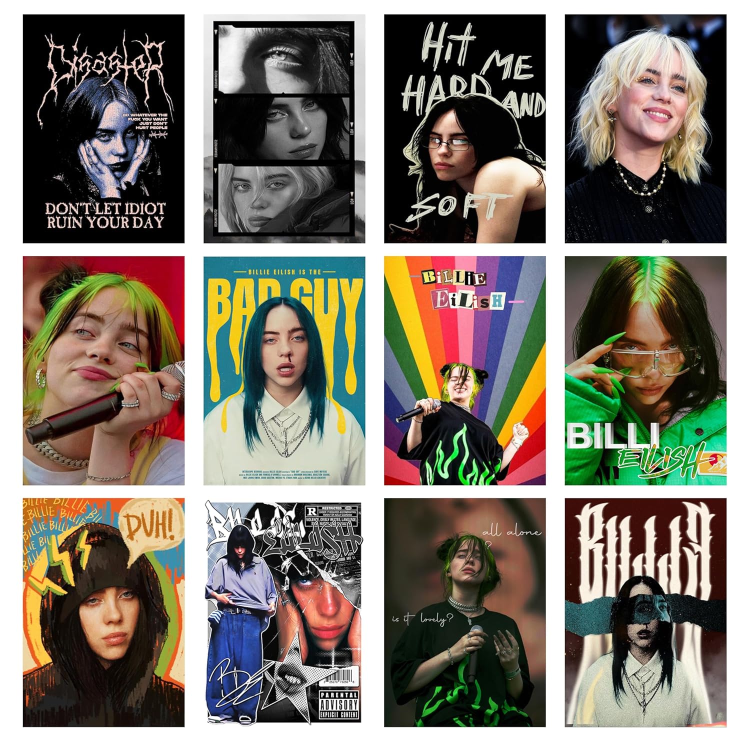 Set of 12 Billie Eilish Music Artist Wall Posters Self Adhesive Sheet Popular Music Artist Album Art Wall Posters Size - A4 Poster for Wall Decoration for Bedroom, Office, Living Room, Dorm Room