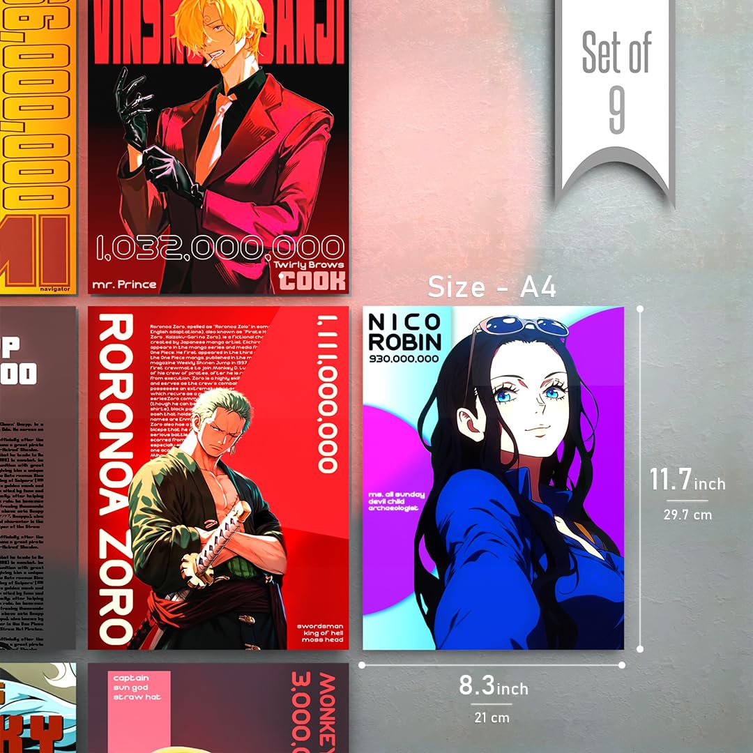Set of 9 One Piece Anime Wall Posters of Size - A4 Poster for Wall Decoration for Bedroom, Office, Living Room, Dorm Room